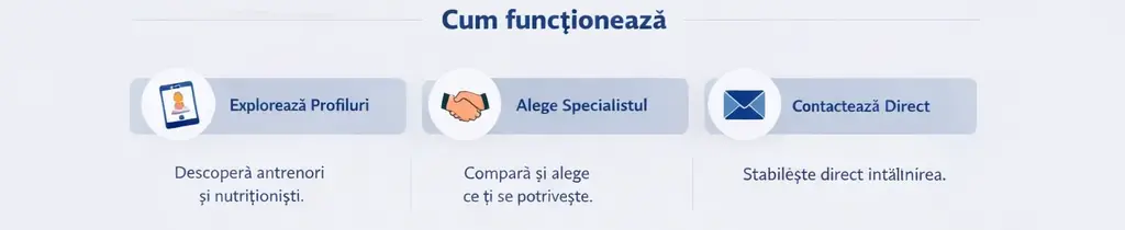 • afișează profiluri de antrenori personali și nutriționiști