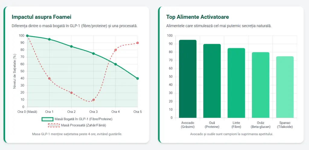 După încheierea tratamentului, accentul trebuie să se mute pe alimente care stimulează natural eliberarea de GLP-1.35 Acestea includ: